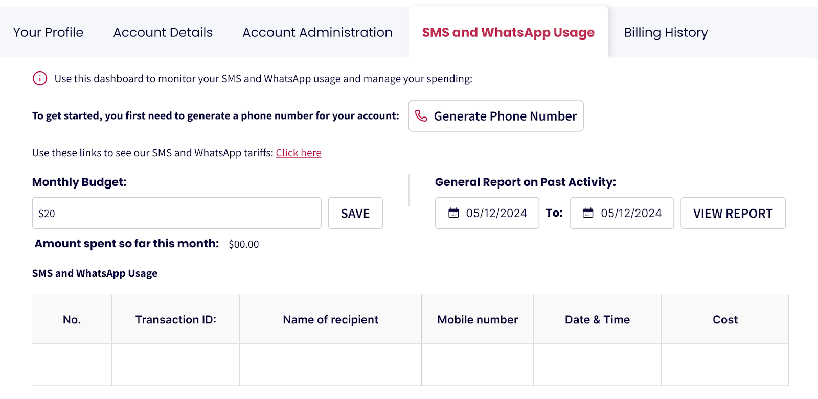 Once set up, you can set your tariff budget and monitor your spend.