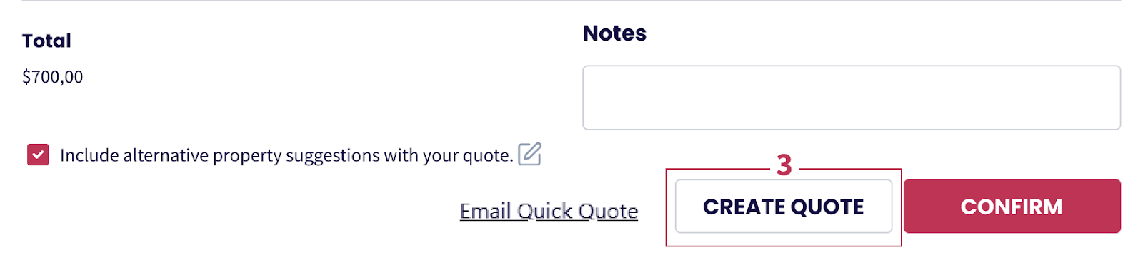After clicking the Create Quote button at the bottom of Create a Booking Quote pop-up.