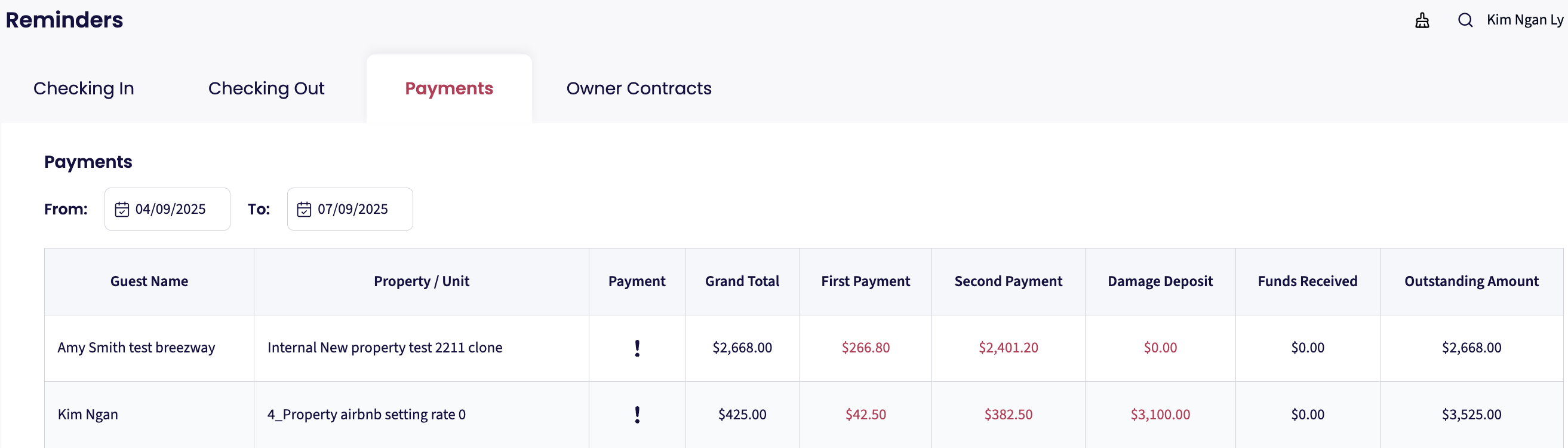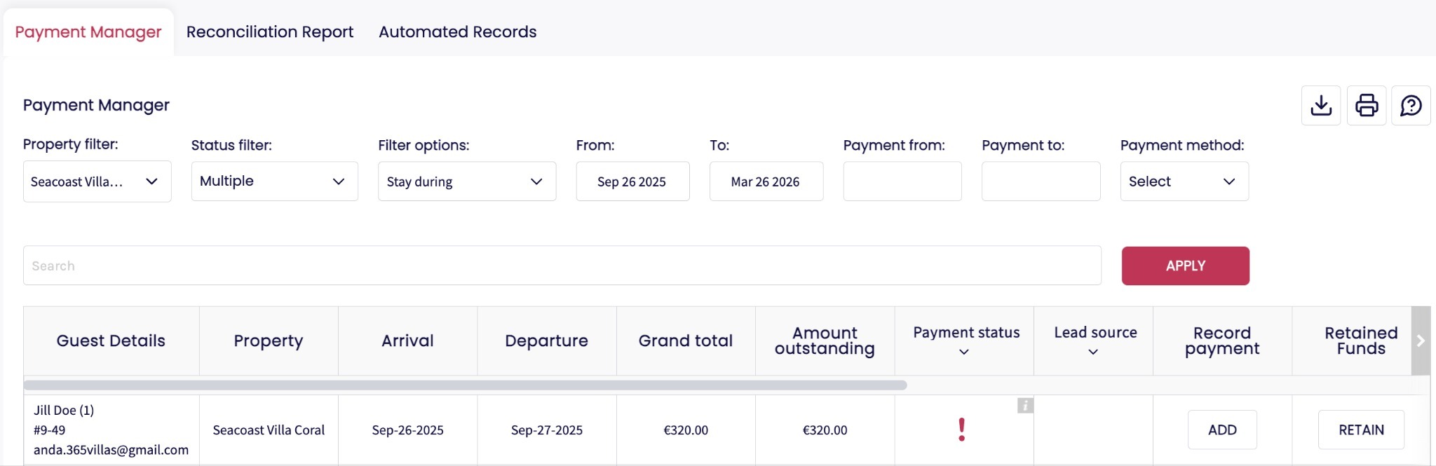 Payment Manager Report: Provides a comprehensive overview of all properties, including payment installments, payments received, damage deposits, retained funds and outstanding balances.