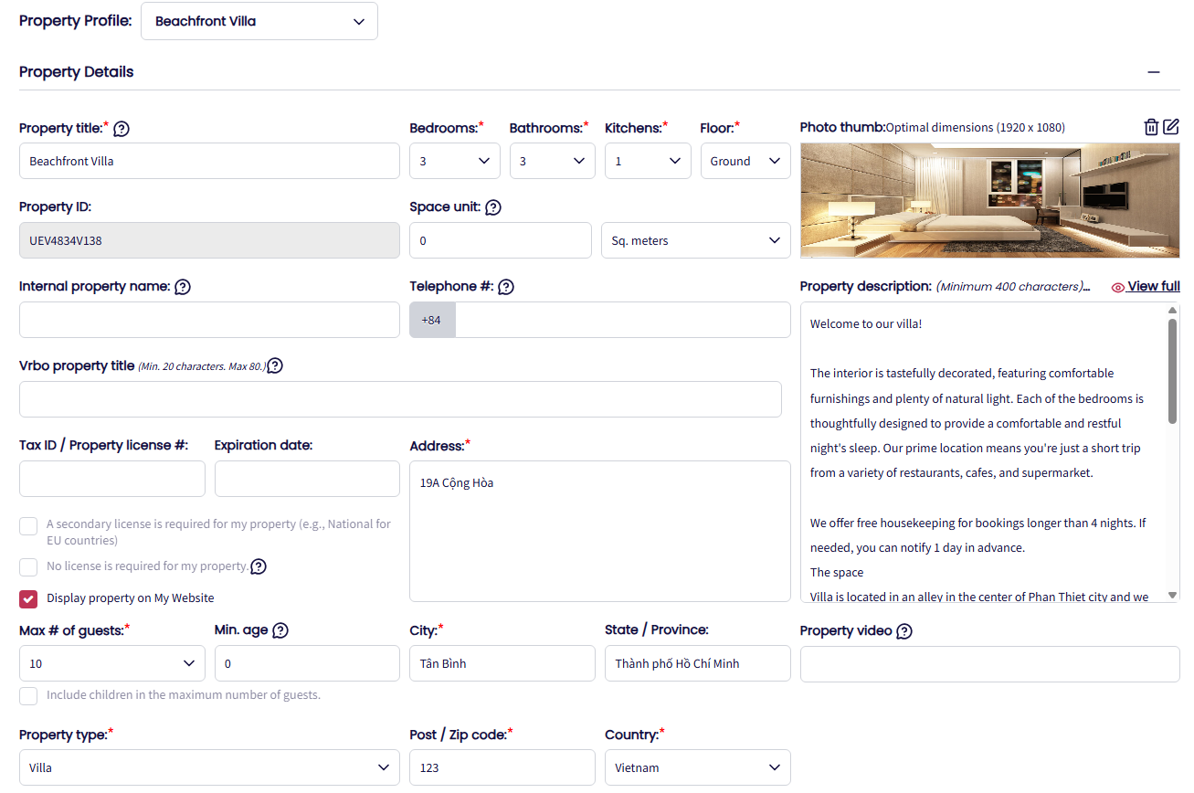 Property Photos: Upload high-quality images showcasing each room, exterior views, and special features. Add detailed and appealing descriptions to highlight unique aspects and amenities.