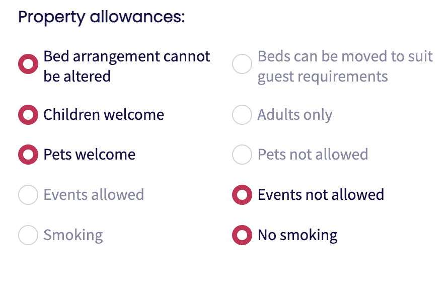 Search Filter: Assign up to 8 relevant search criteria to this property. These will appear on the search engine on your website.