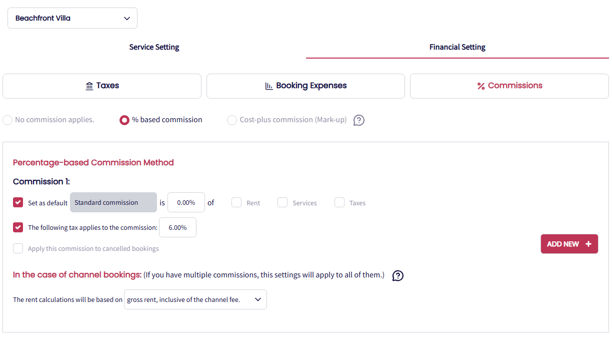 2. % based commission: Calculate with methods and apply your commission to your owner by rents & services