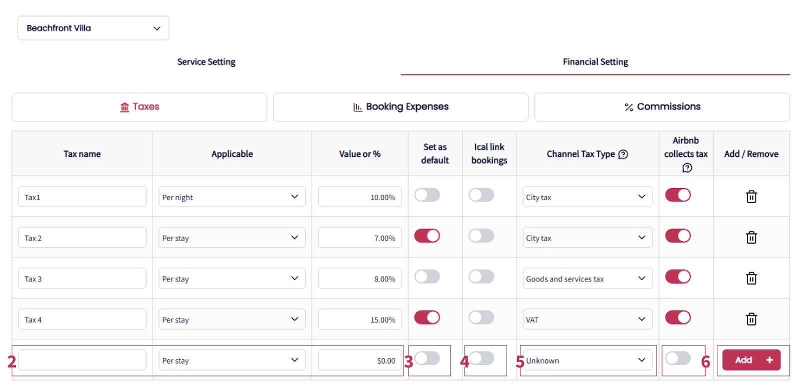 The tax settings help you manage taxes from different sources such as Airbnb Tax, and Channel Taxes (City Tax, Local Tax, VAT...). This is automatically accounted for in each of your bookings and helps you control your incomes and expenses more easily in GuestWisely’s Trust Accounting.