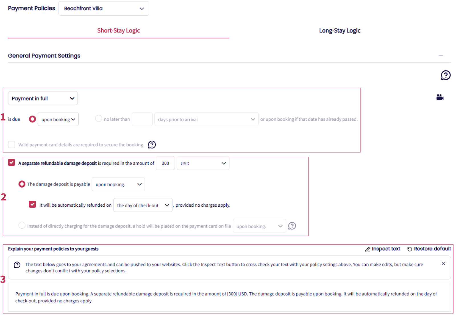 Payment Policies help users manage guest payment by setting clear guidelines for Short Stay and Long Stay rentals.