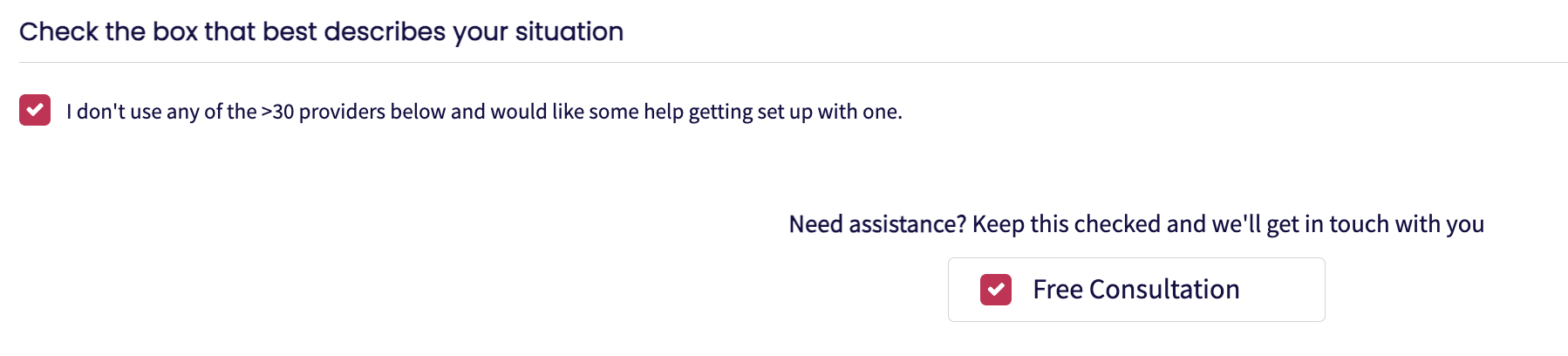 1. Select the option “I don't use any of the >30 providers below and would like some help getting set up with one.”