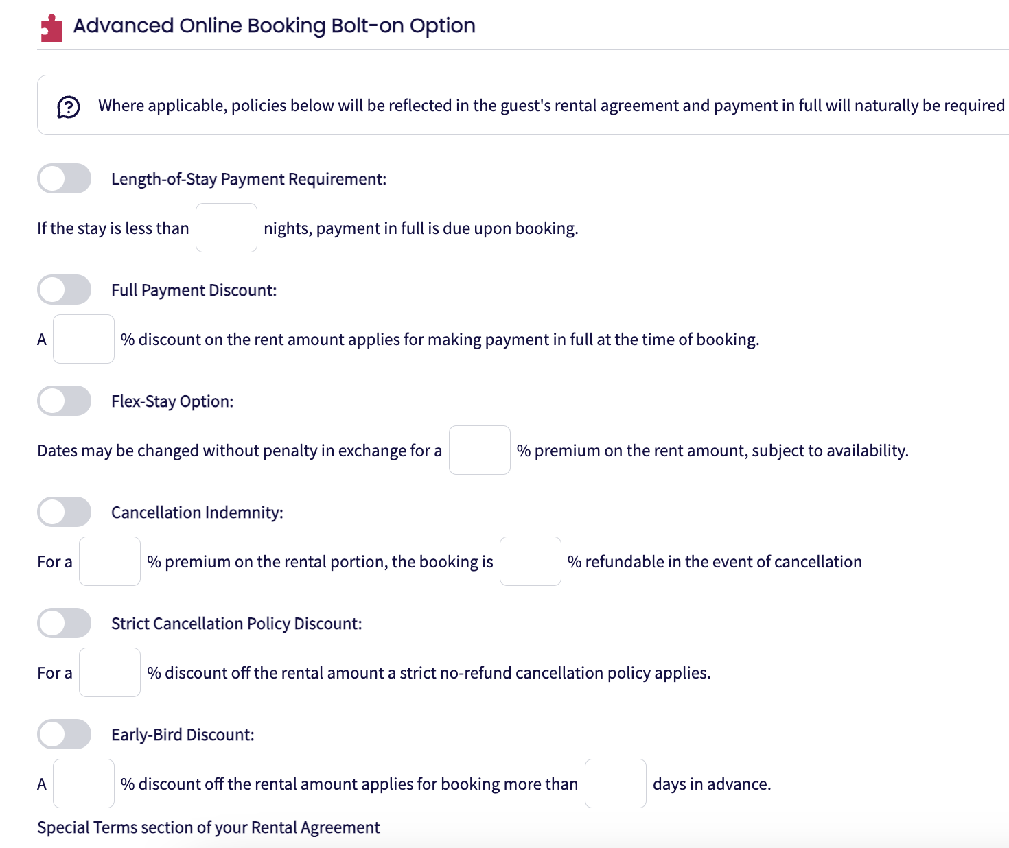4. Booking.com Integration: If you use the built-in Booking.com direct integration, you'll need to choose from their pre-defined cancellation policy options.