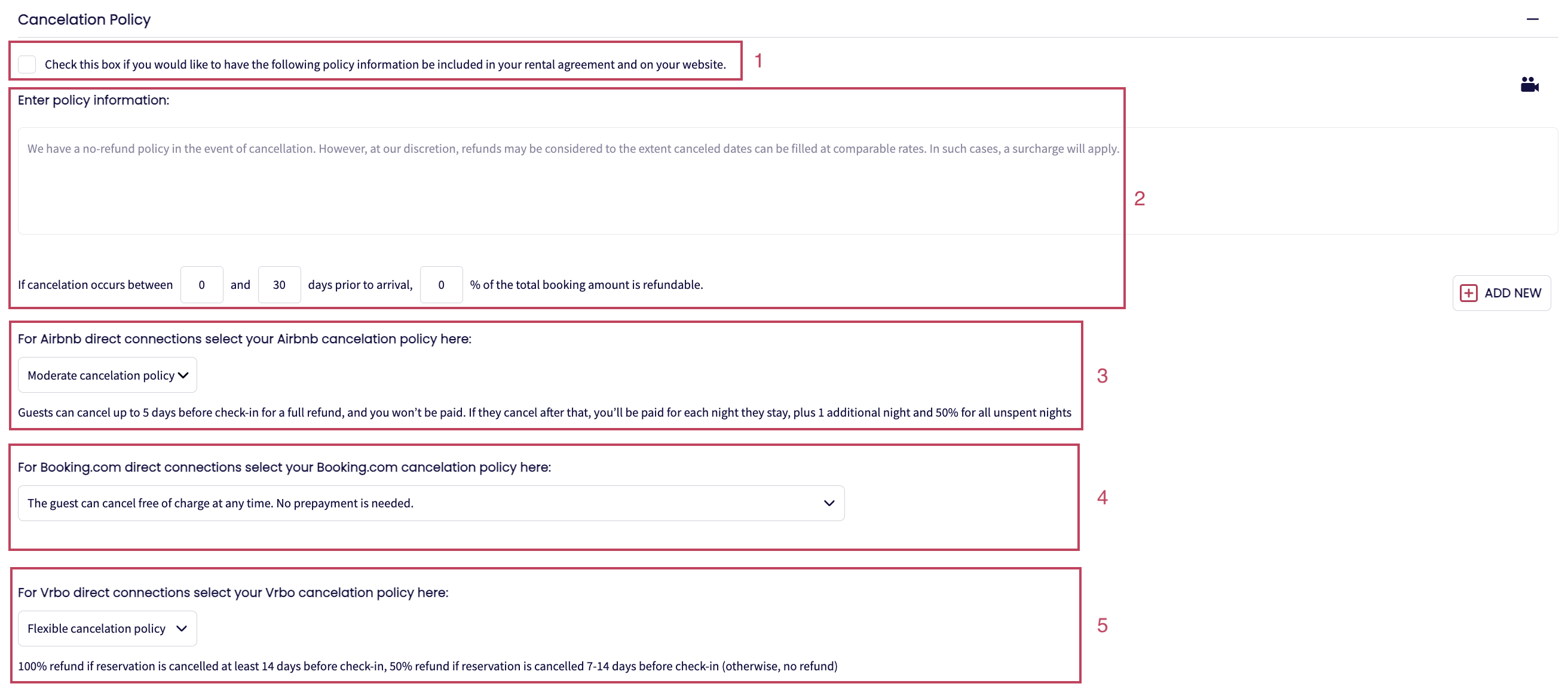 3. Airbnb Integration: If you use the built-in Airbnb direct integration, you'll need to choose from their pre-defined cancellation policy options.