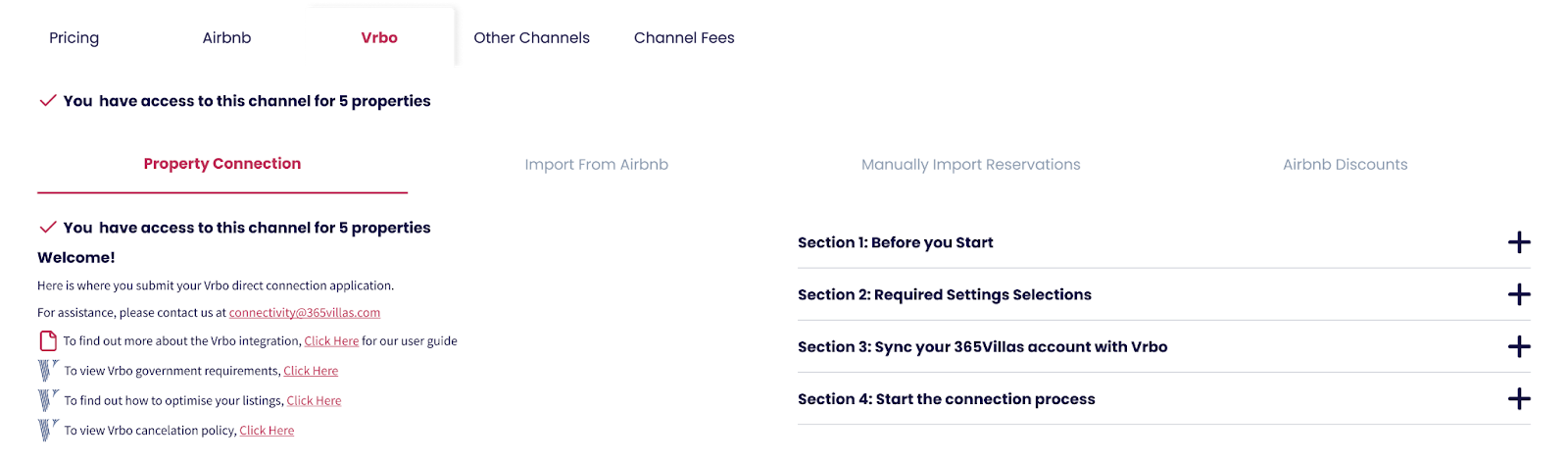 Start the onboarding process by clicking ‘Connect to Vrbo’ and follow the steps until you receive confirmation that the onboarding process is complete.