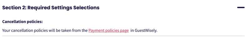 For the Cancellation Policy, the system will utilize the policies you set up under Payment Policies.