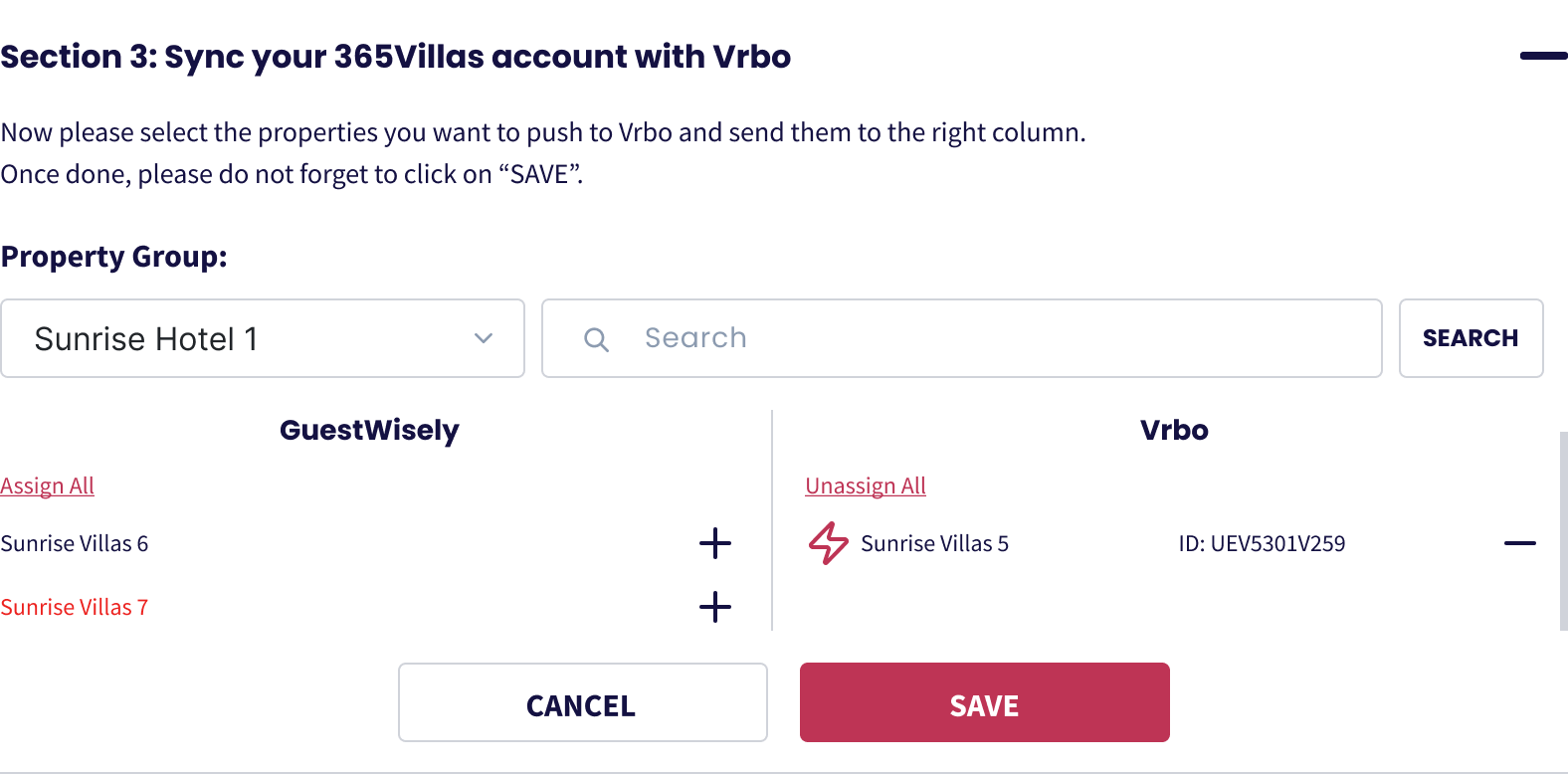 3 Move the property from the right box (Vrbo) to the left box (GuestWisely)