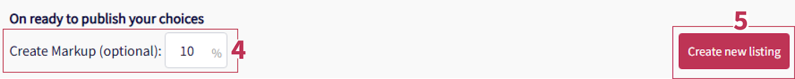 (Optional) Add Markup to pricing then click “Create new listing”.
