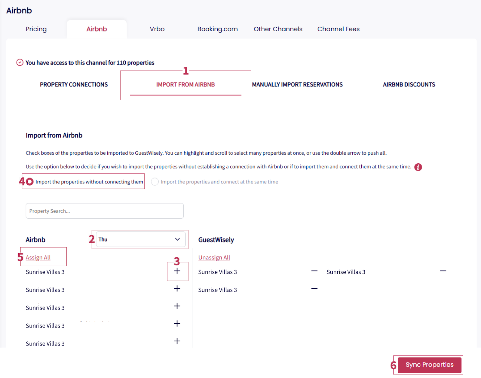 Use the “Assign All” to shift all your properties into the designated area within GuestWisely for further actions.