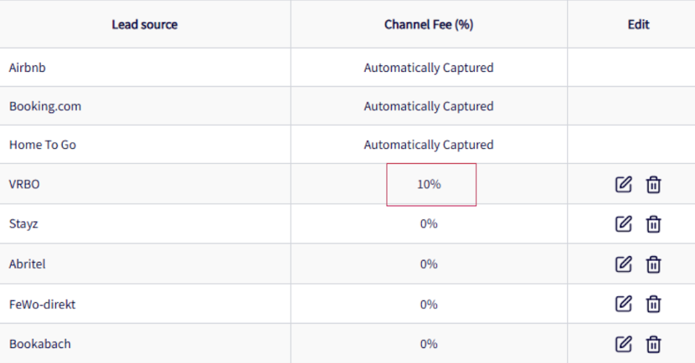 If a channel’s fee is "Automatically Captured", it means GuestWisely receives this data directly via API. And you don’t need to modify the percentage.