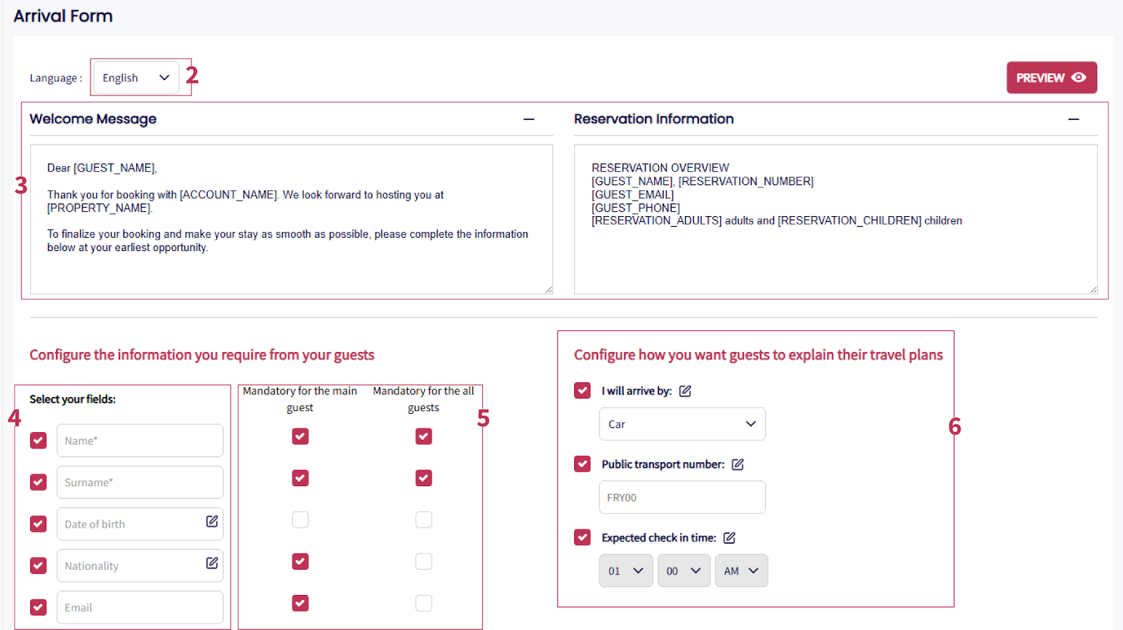 Choose the preferred language in which the Arrival Form will be displayed to guests.