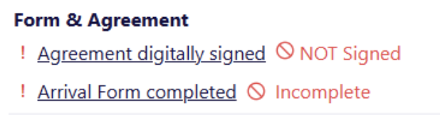 Beside that, you can check the status of the Arrival form in the Booking Editor: