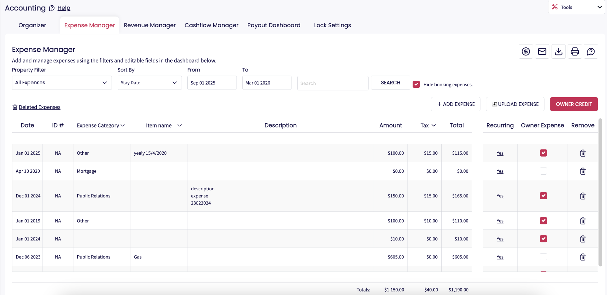 With intuitive tools for adding, editing, and bulk uploading expenses—plus seamless integration with Owner Statements and Accounting Reports—the Expense Manager helps you maintain accurate financial records with ease.