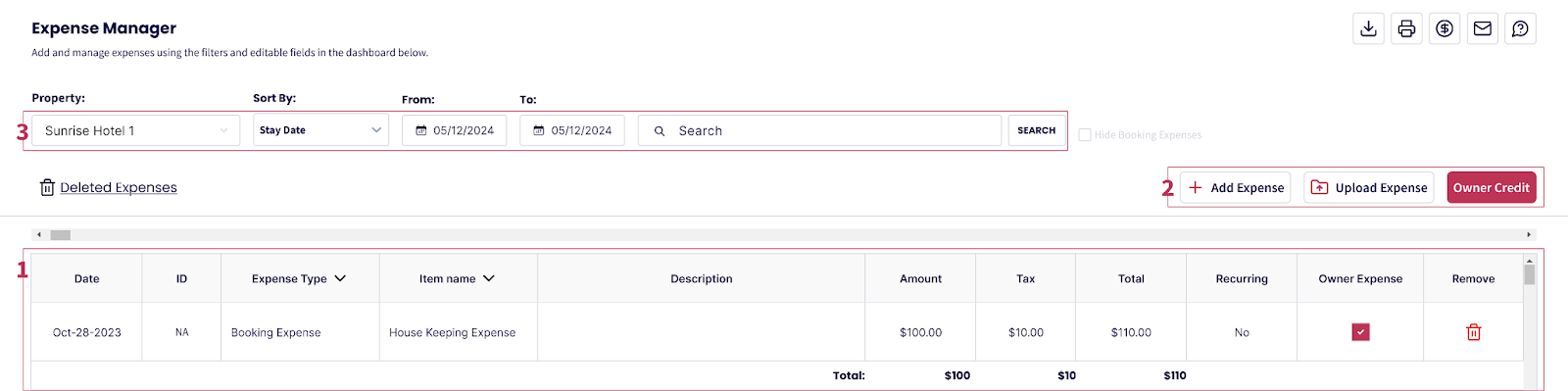 Example: If you pay for a housekeeping service and mark it as an Owner Expense, it will appear in the Revenue section for reimbursement.