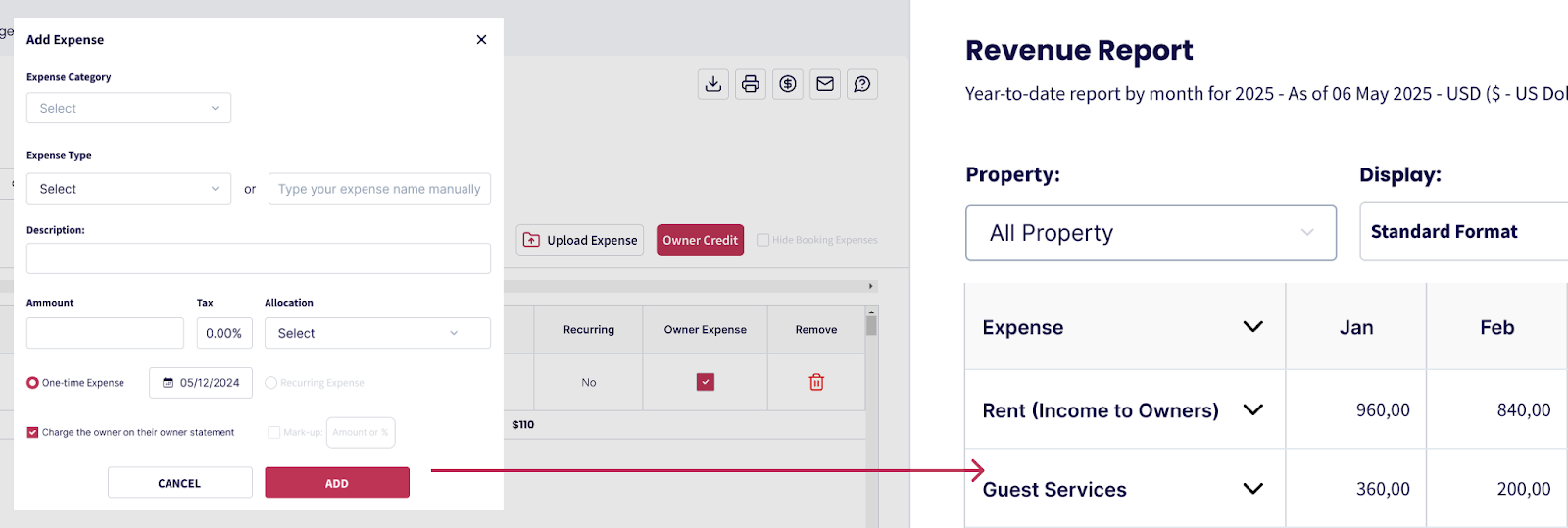 All expenses automatically flow into your GuestWisely Accounting reports and Owner Statements. Check out the full tutorial for Accounting flow here.