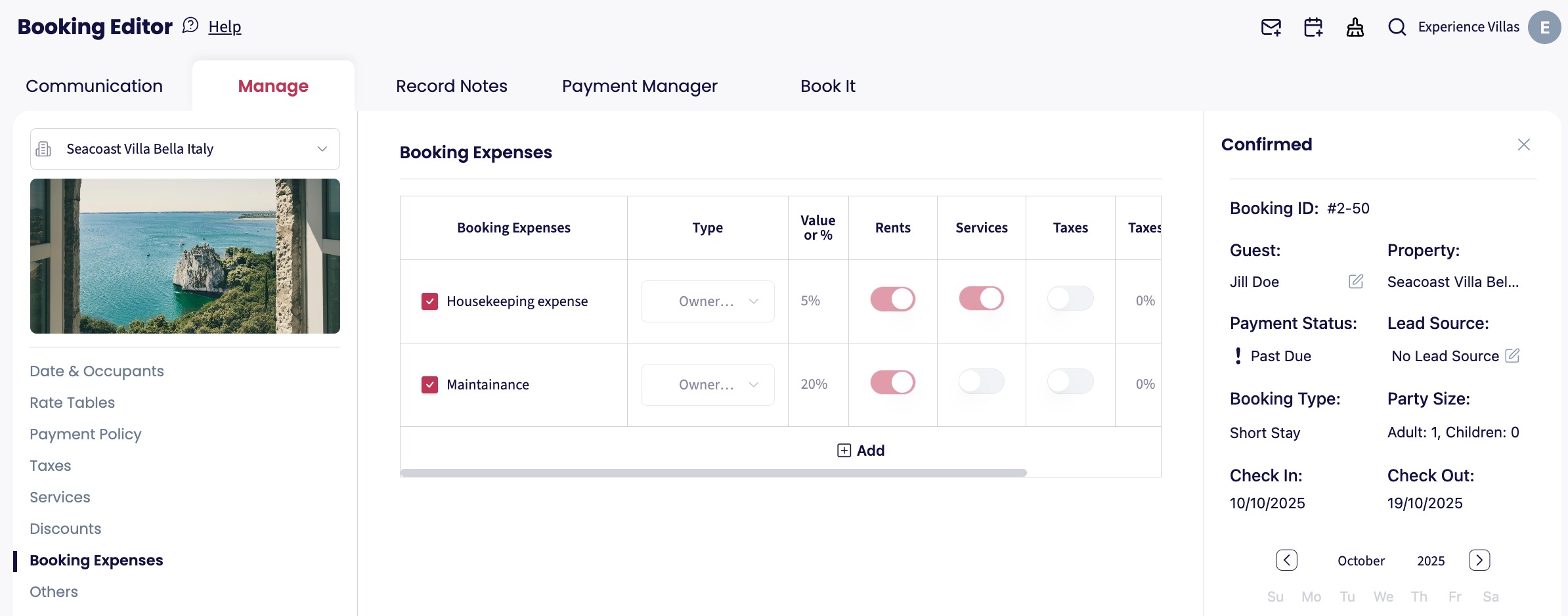 Booking Expenses – Managed at the booking level in the Reservation Manager (linked for easy access).