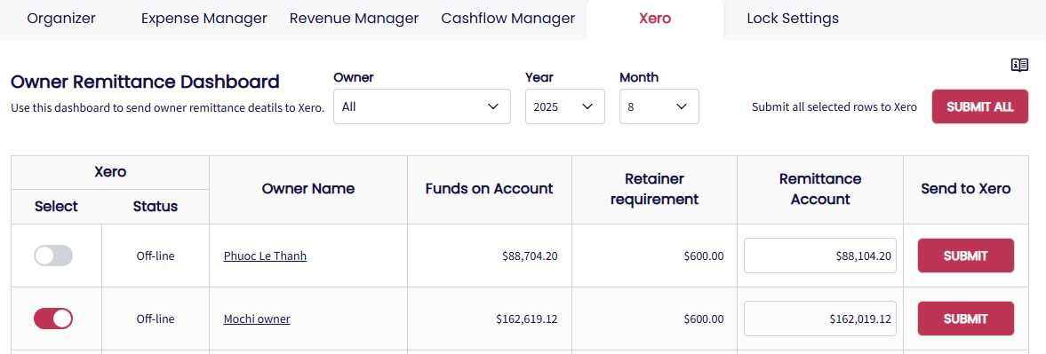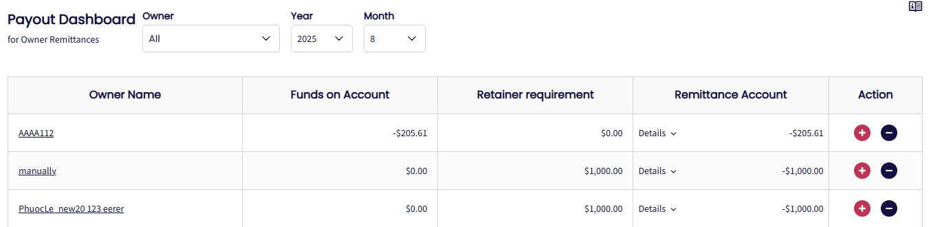 The Payout Dashboard allows you to view and manage cashflow in one convenient place for all your owners. It provides a real-time view of the: