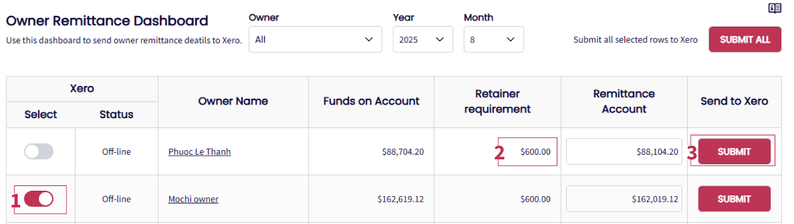 Important: This update will not appear in the Owner Statement, as the Owner Statement and Trust Accounting records serve different purposes. The Owner Statement provides a snapshot of the previous month, while the Trust Accounting handles ongoing cashflows and payments.