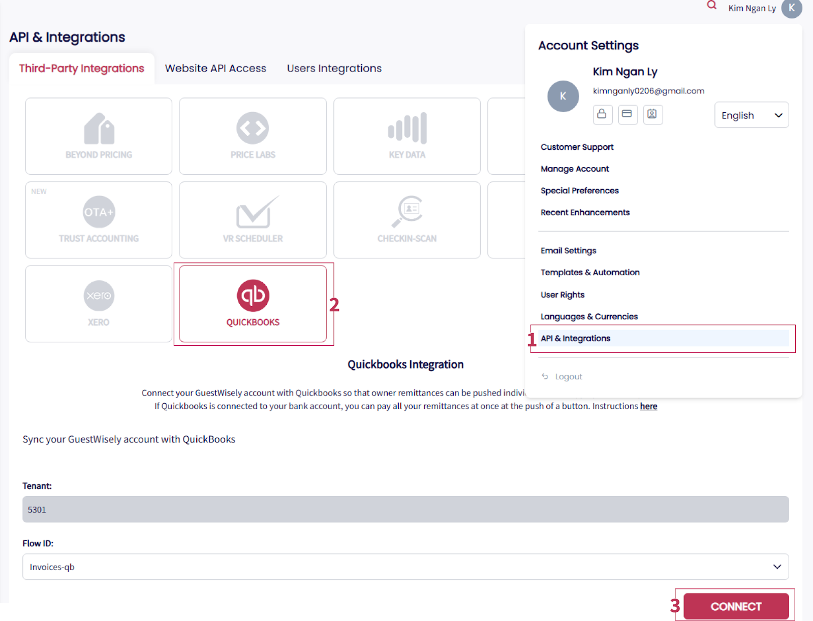 Next, navigate to Settings > API & Integrations in GuestWisely.