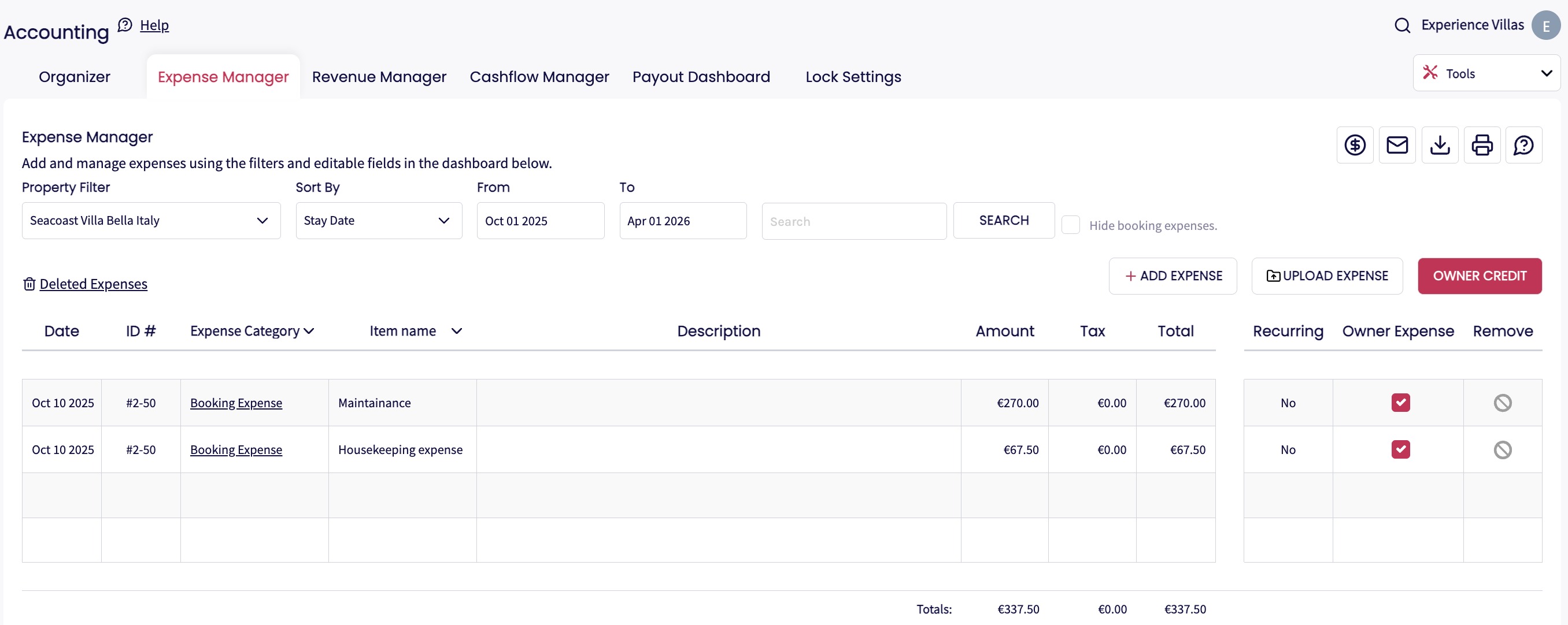 After the payment is recorded, no direct changes are possible. Reconciliations should be added manually in the Expense Manager using "Add Expense" or "Owner Credit”.