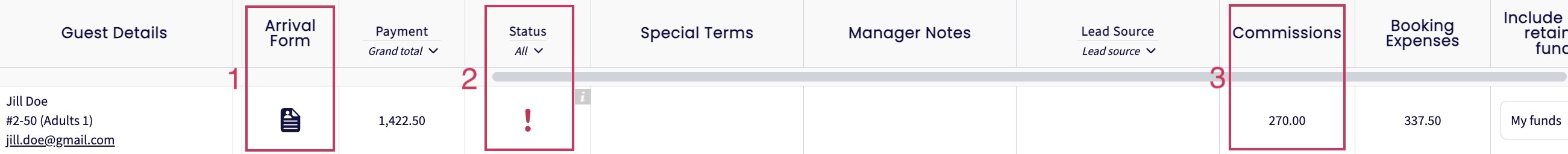 Arrival Form: confirms whether or not the guest has completed their Arrival Form, assuming you use this helpful GuestWisely feature.