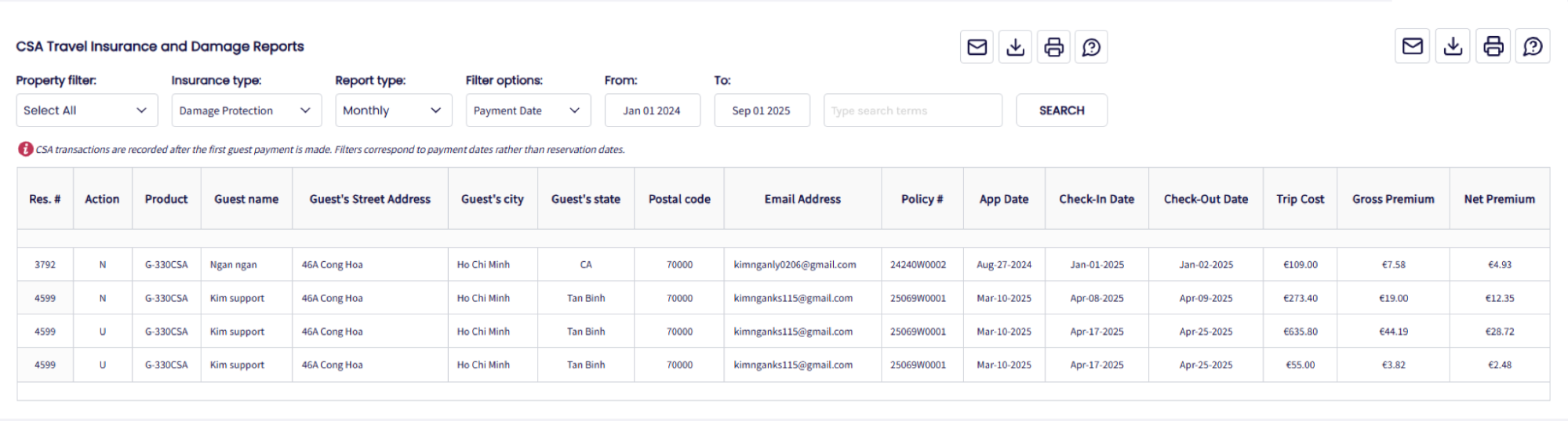 Travel & Damage Insurance Reporting (for CSA users)