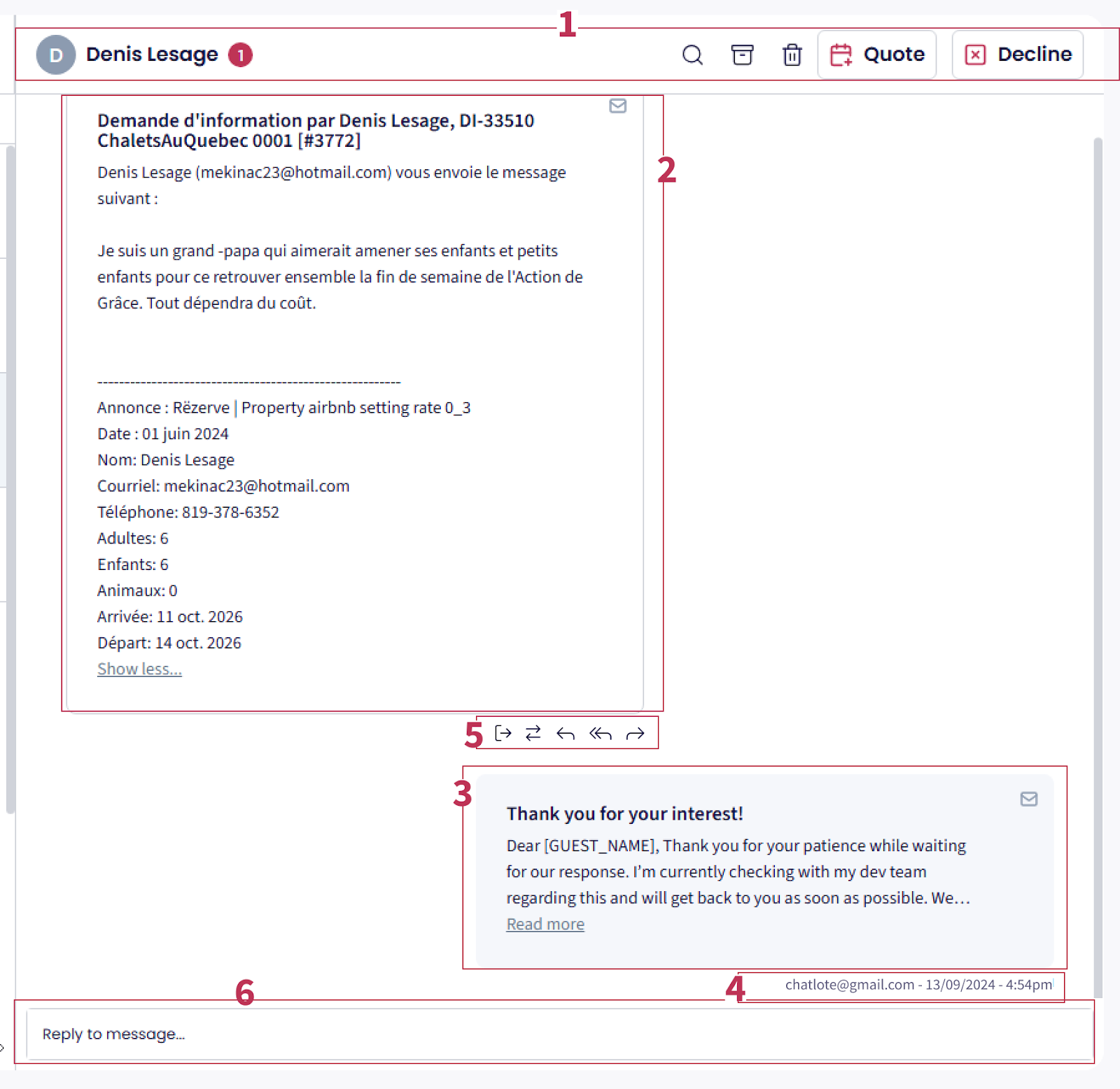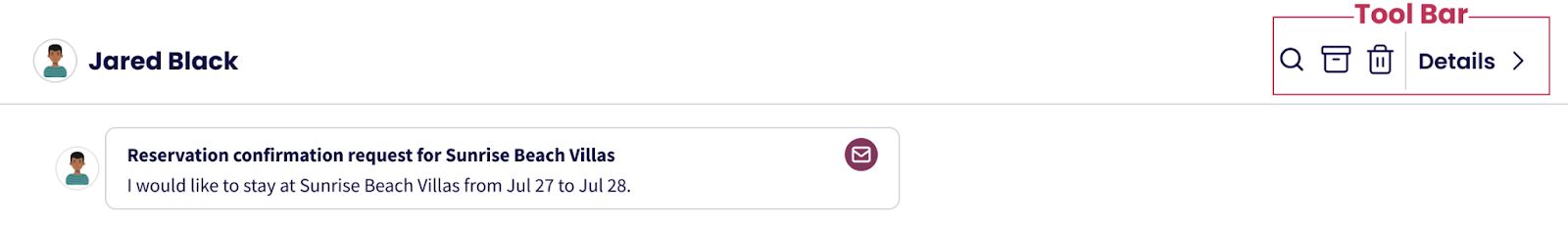 While our interface looks like a conventional messaging platform, each thread also serves as a Reservation File, deeply integrated with our reservation logic and the rest of your booking workflow.