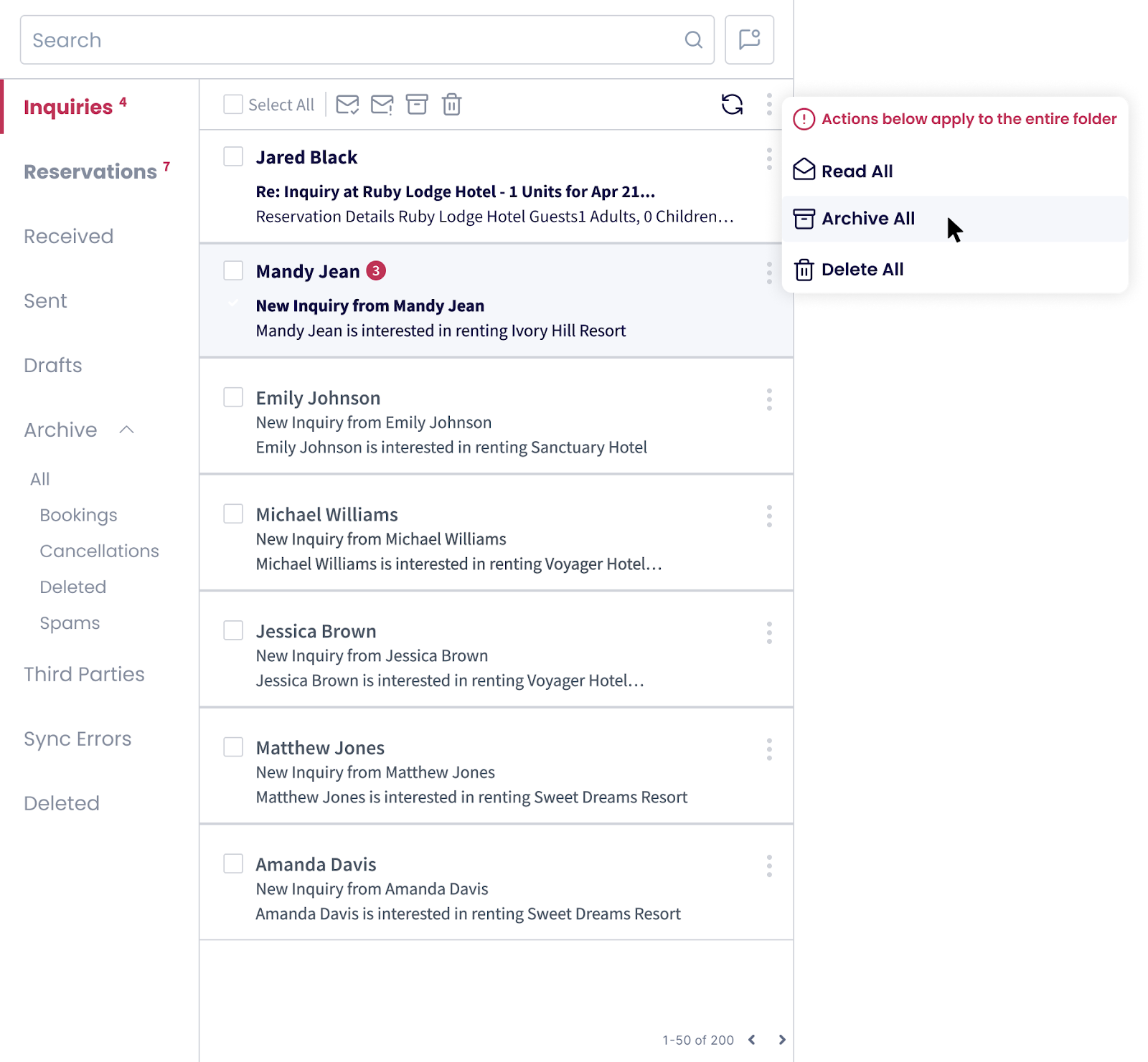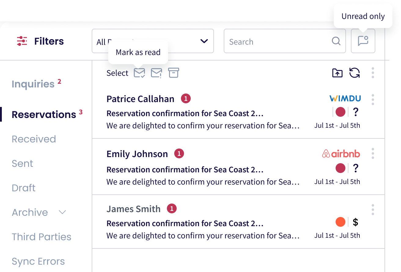 Note: Inquiries and Reservations folders include advanced productivity tools (not available in Received and Sent folders). We’ll cover those shortly.