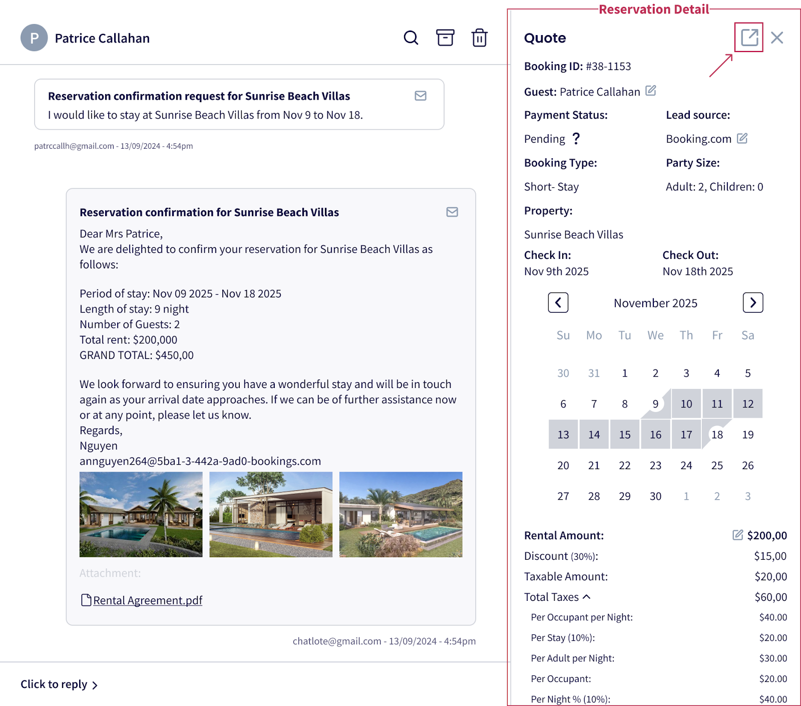 The Reservation File is your all-in-one hub for managing the guest’s messages, booking info, payments, and more: