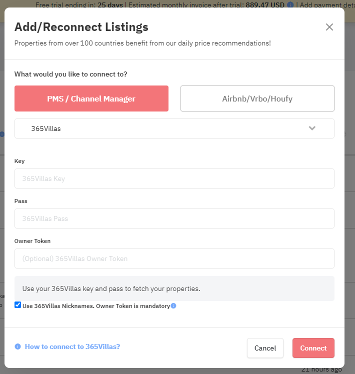 (Optional) Check “Use GuestWisely Nicknames” if you want to use internal listing names from GuestWisely in PriceLabs. Enter your Owner Token to enable this.