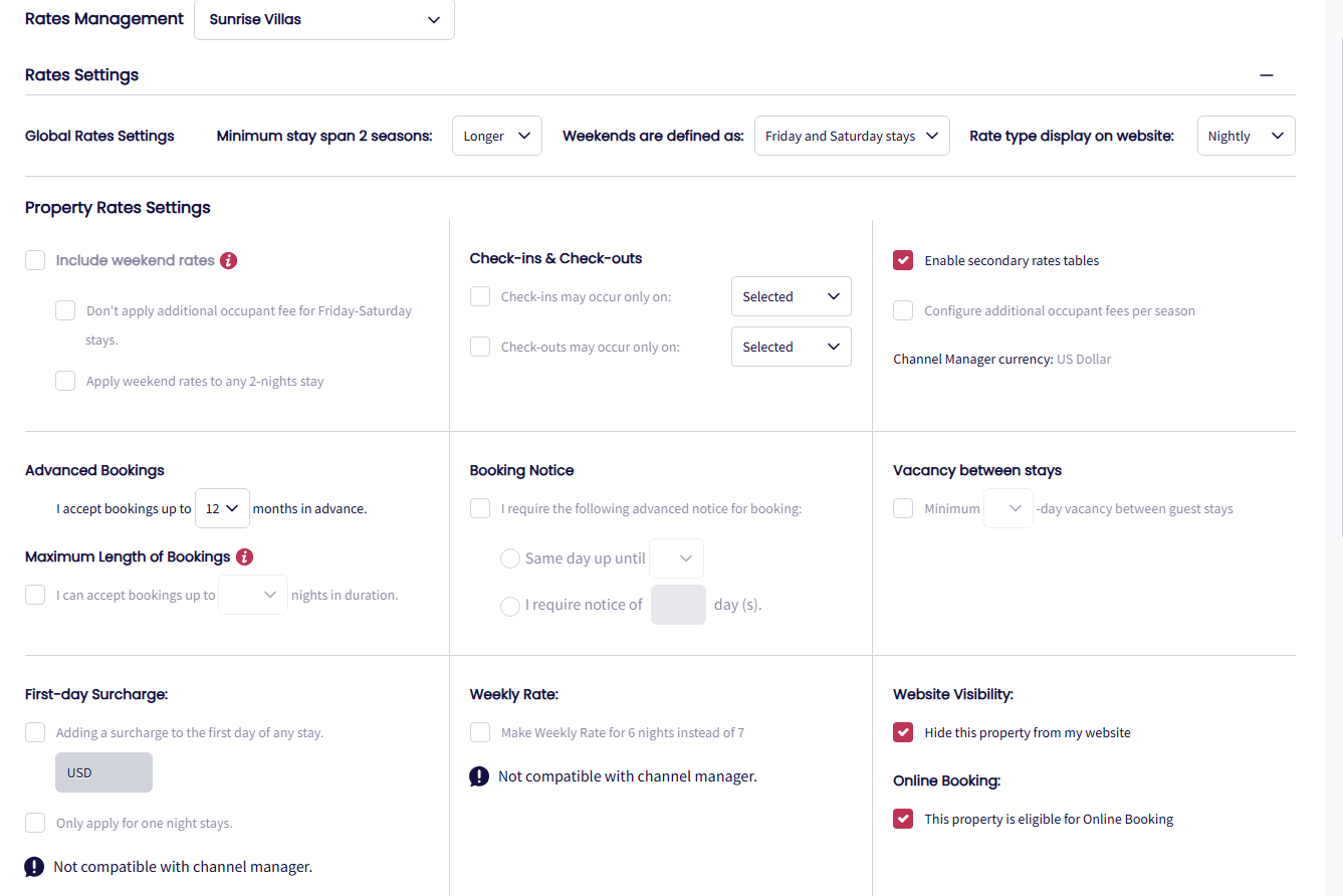 Rates Settings: In your GuestWisely Rates Settings, enable all relevant options like: