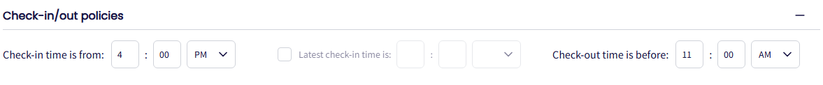 5. Optional setup: Check-in/Check-out, Rules & Discounts