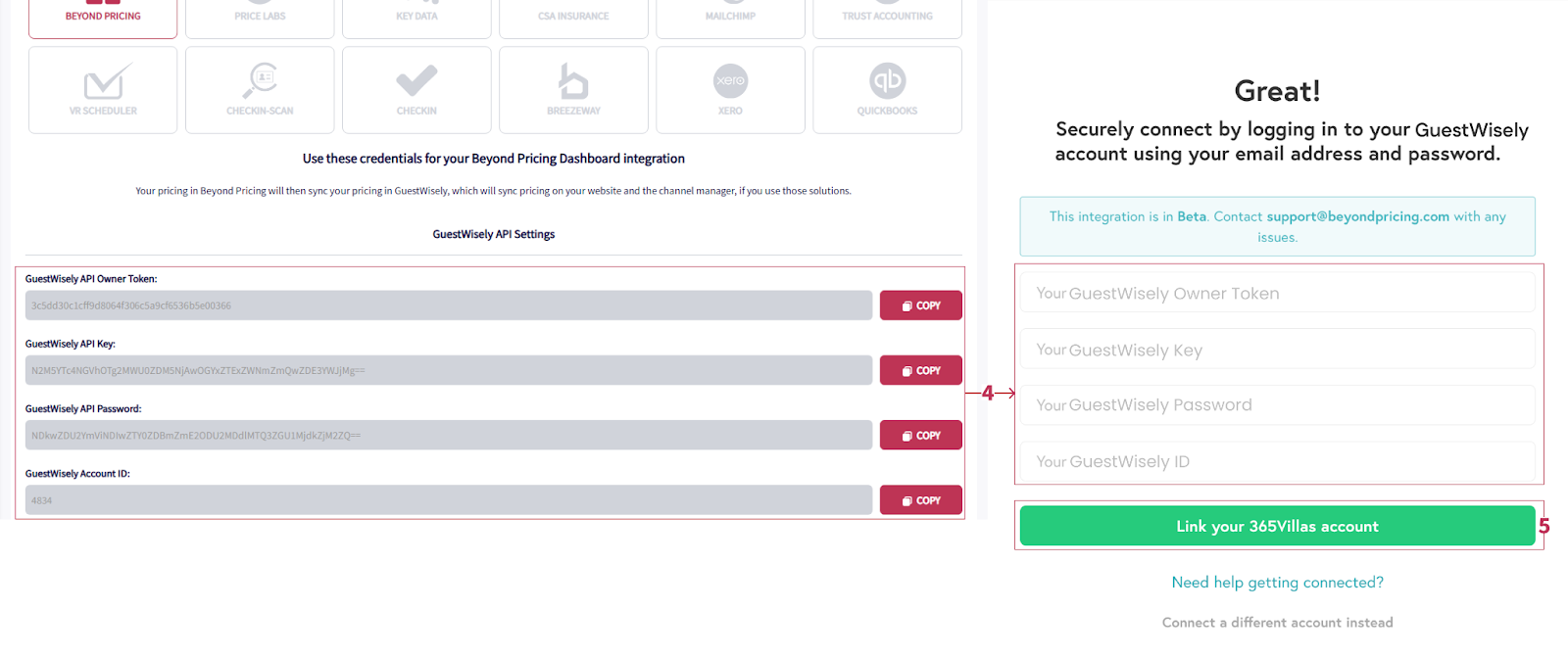 Enter your GuestWisely Account ID, Owner Token, Key, and Password.