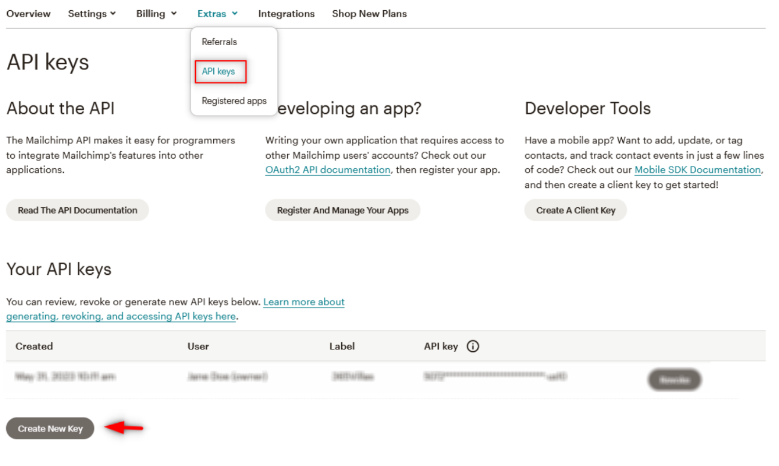 (You can generate a key under Mailchimp > Profile > Extras > API Keys > Create New Key).