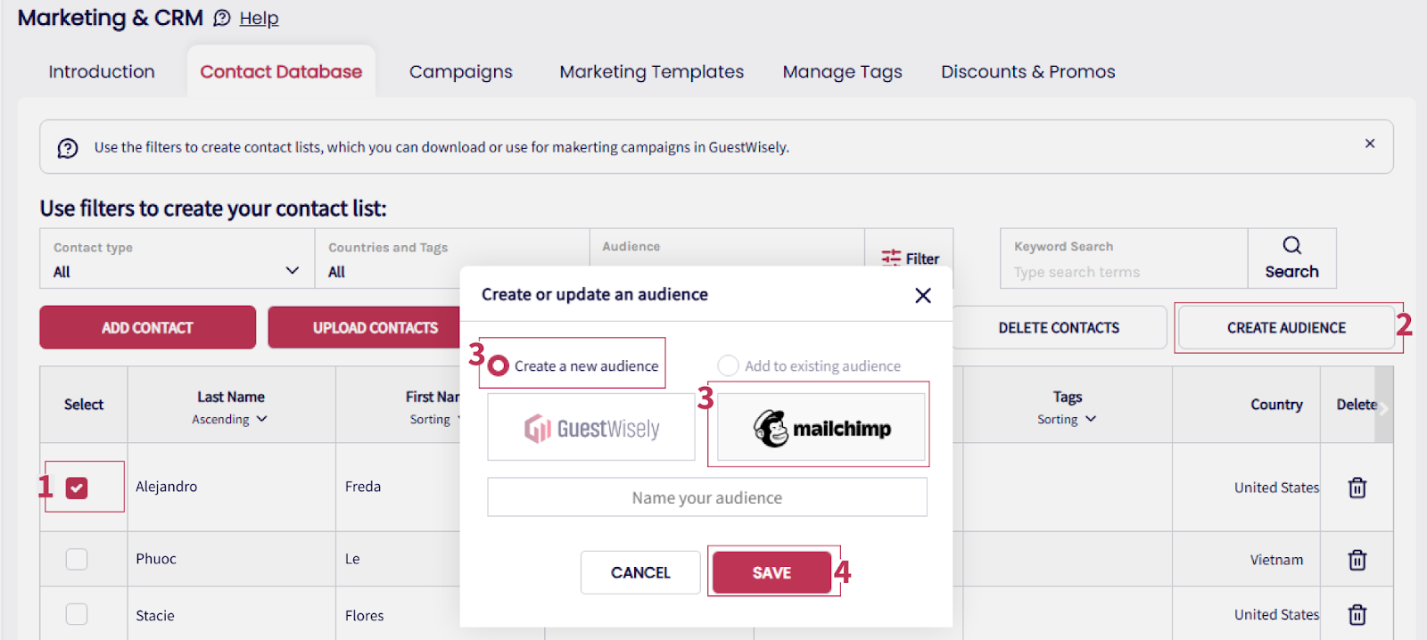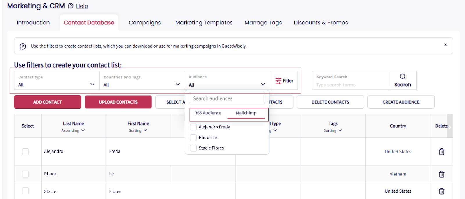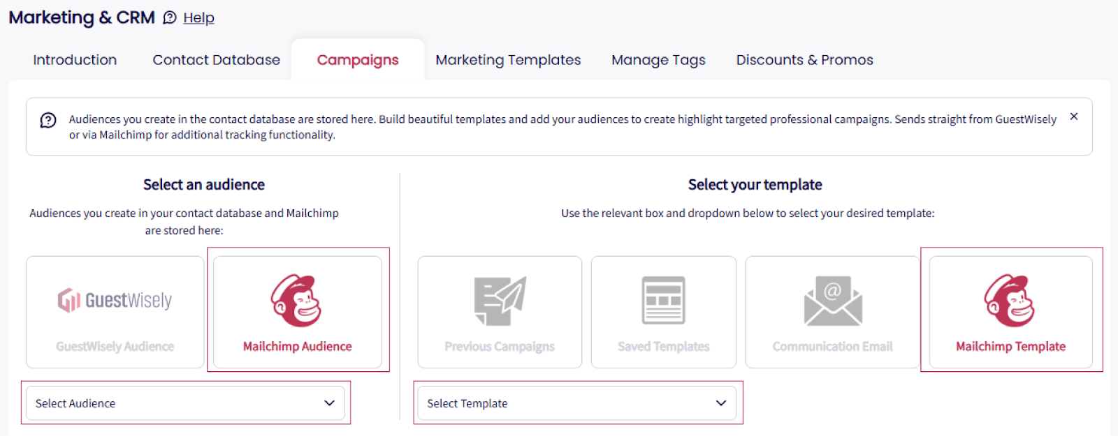 Mailchimp is a powerful marketing platform that enables you to create targeted, personalized email campaigns and track their performance through advanced analytics. When integrated with GuestWisely via the Marketing & CRM module, you can streamline your communications and engage more effectively with your clients.