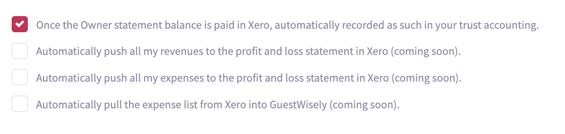 Finally, choose how you would like Xero to integrate with GuestWisely.