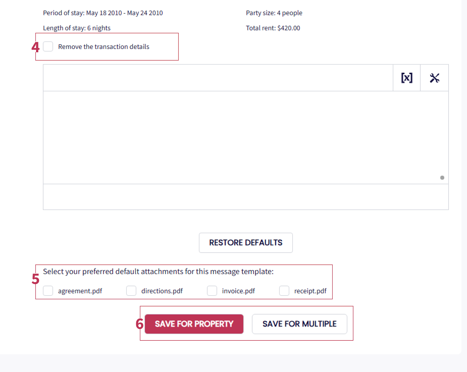 Attaching Documents: Use the attachment option at the bottom of the template editor to include documents like rental agreements.