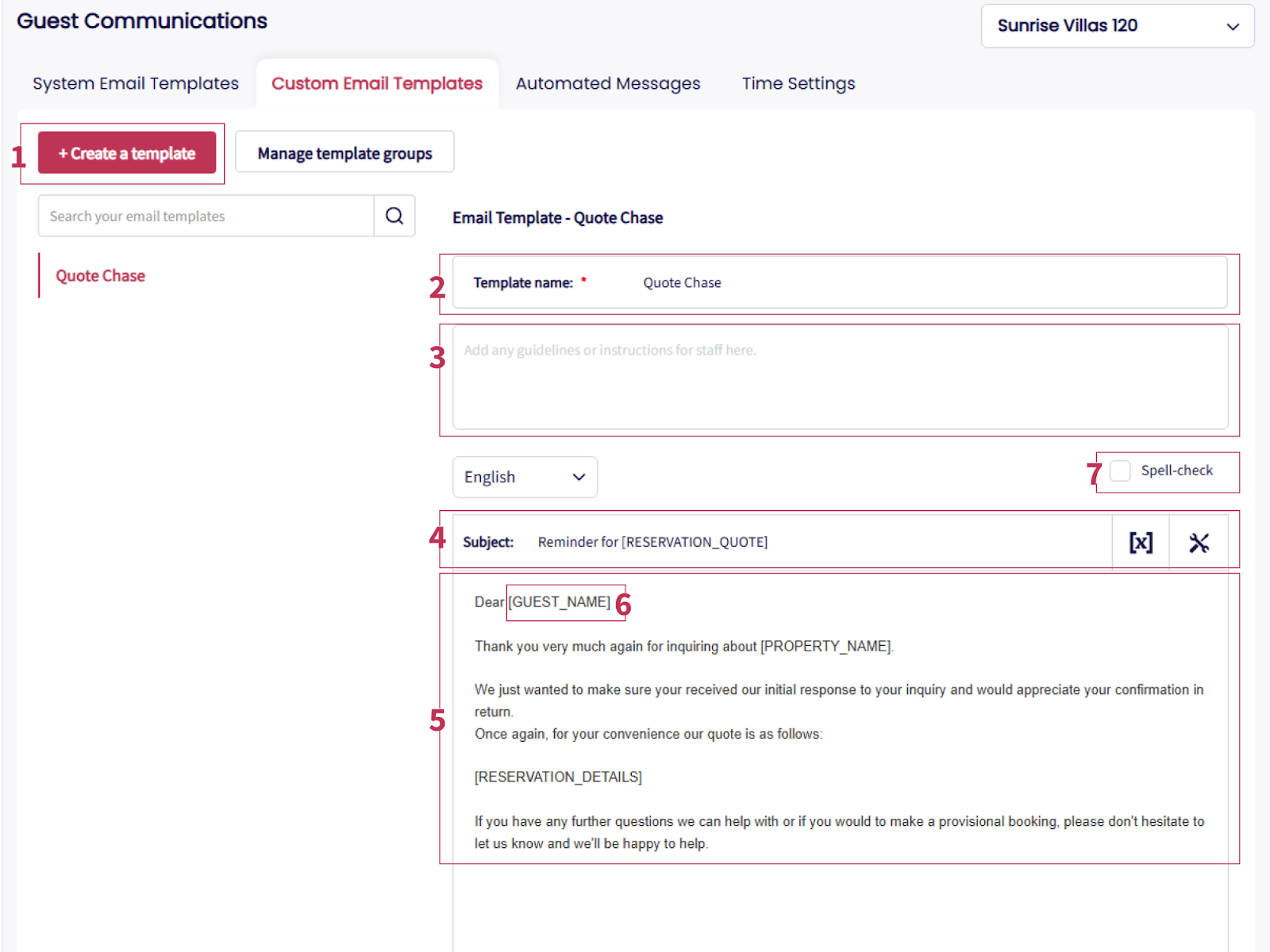 Using Short Codes for Dynamic Content: Short codes dynamically populate emails with guest names, booking details and more.