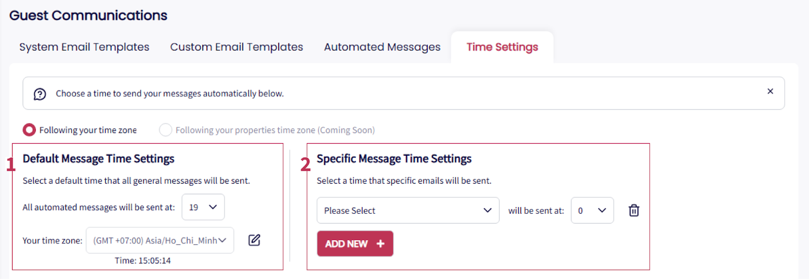 Customizing Message Timing: Adjust timing for specific messages, which override default settings.