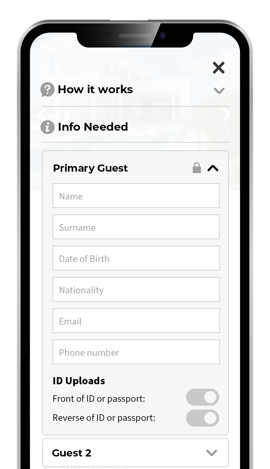 Guest’s personal login code (mandatory for login, unique for each booking)
