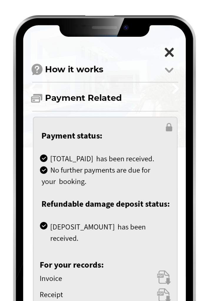 Seamless integration with your GuestWisely account – all property, booking, and policy information is automatically synced