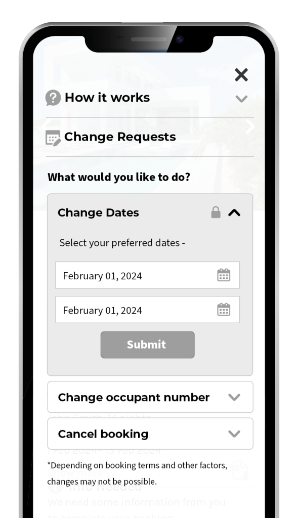 Change Requests![]() | Lets guests request changes to booking details (dates, occupants, etc.) or cancellation. | Sends clear, concise requests directly to your GuestWisely inbox for quick review and response. |
