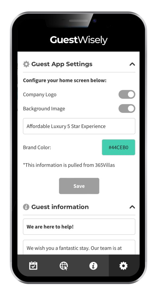 4. Guest App Settings: Customize the design and content of your GuestWisely app.