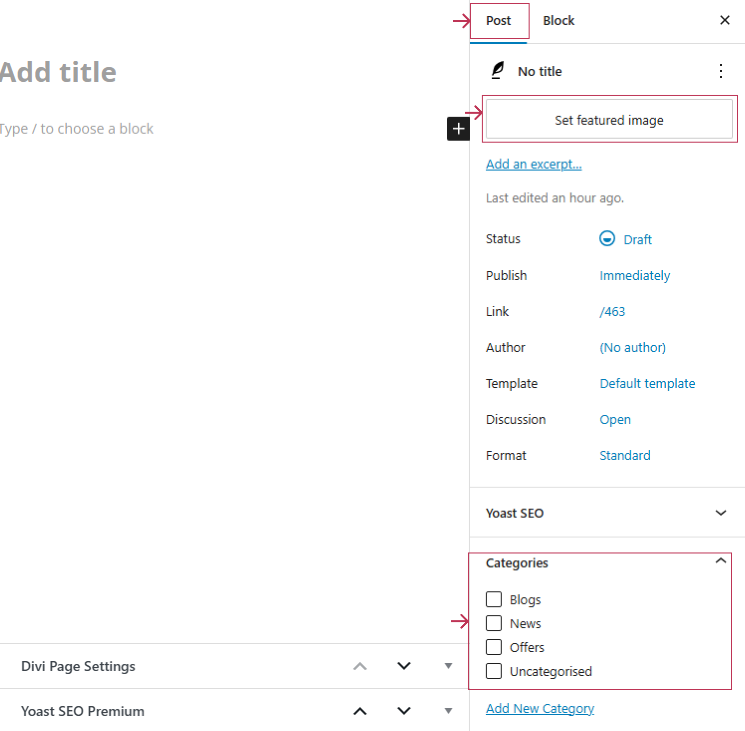 The post URL will be automatically generated from your post title but you have the option to amend this by clicking the URL link.
