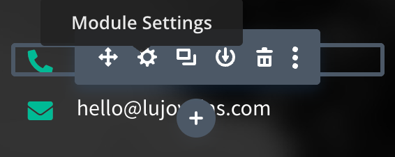 Enter the footer via the Edit icon where you will make a few small edits to your company information. Make your way through each grey module editing Tel, Email, Address and Social Media as shown below. The Menu items are controlled in WordPress CMS later, should you need to update.