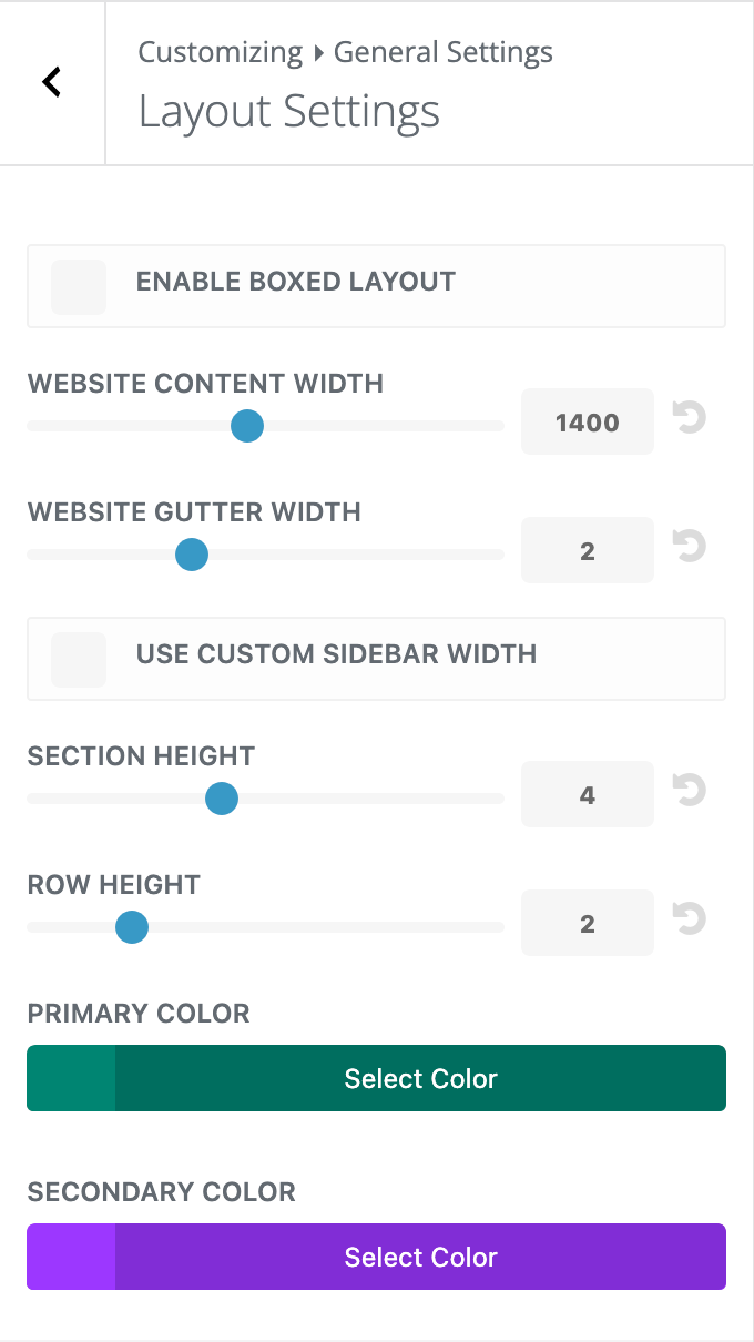 Layout SettingsClick on the Sierra green swatch in Theme Accent Color and it will bring up your default colour palette you have selected earlier. Choose the main highlighting colour from your brand which the theme will use as the default colour for various modules on your pages. |