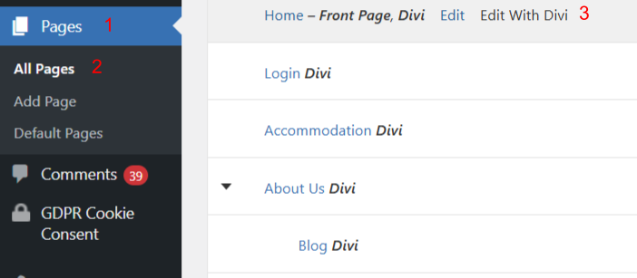 Go to Pages → All Pages.
